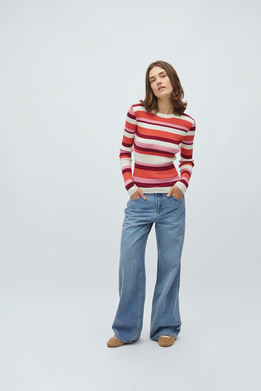 MBYM CHRISTINA Longsleeve, hellblau rot gestreift