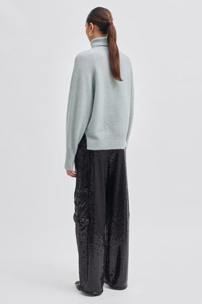 SECOND FEMALE BROOK KNIT OVERSIZED Rollkragenpullover, eisblau