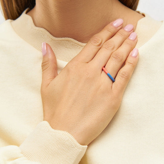 LULU COPENHAGEN DOUBLE COLOR Ring, orange-coral/blue