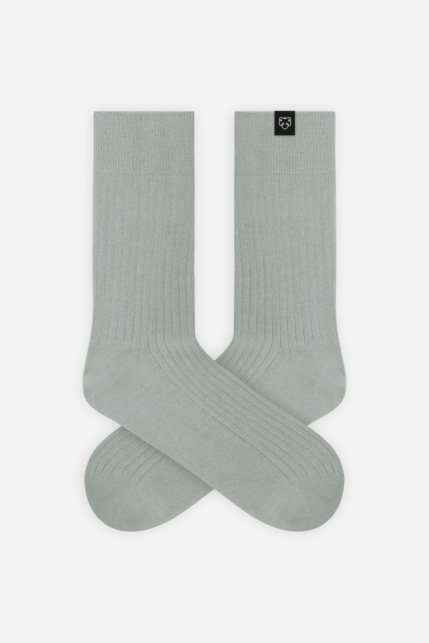 Mid-Calf Socken in salbeigrün. Verstärkte Zehen- und Fersenpartie.