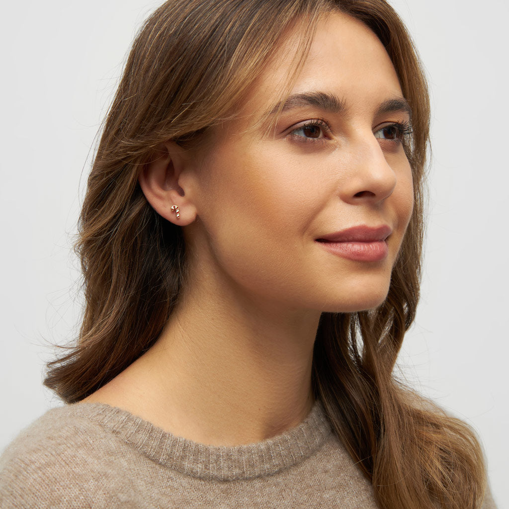Ohrring in Form einer Zuckerstange.