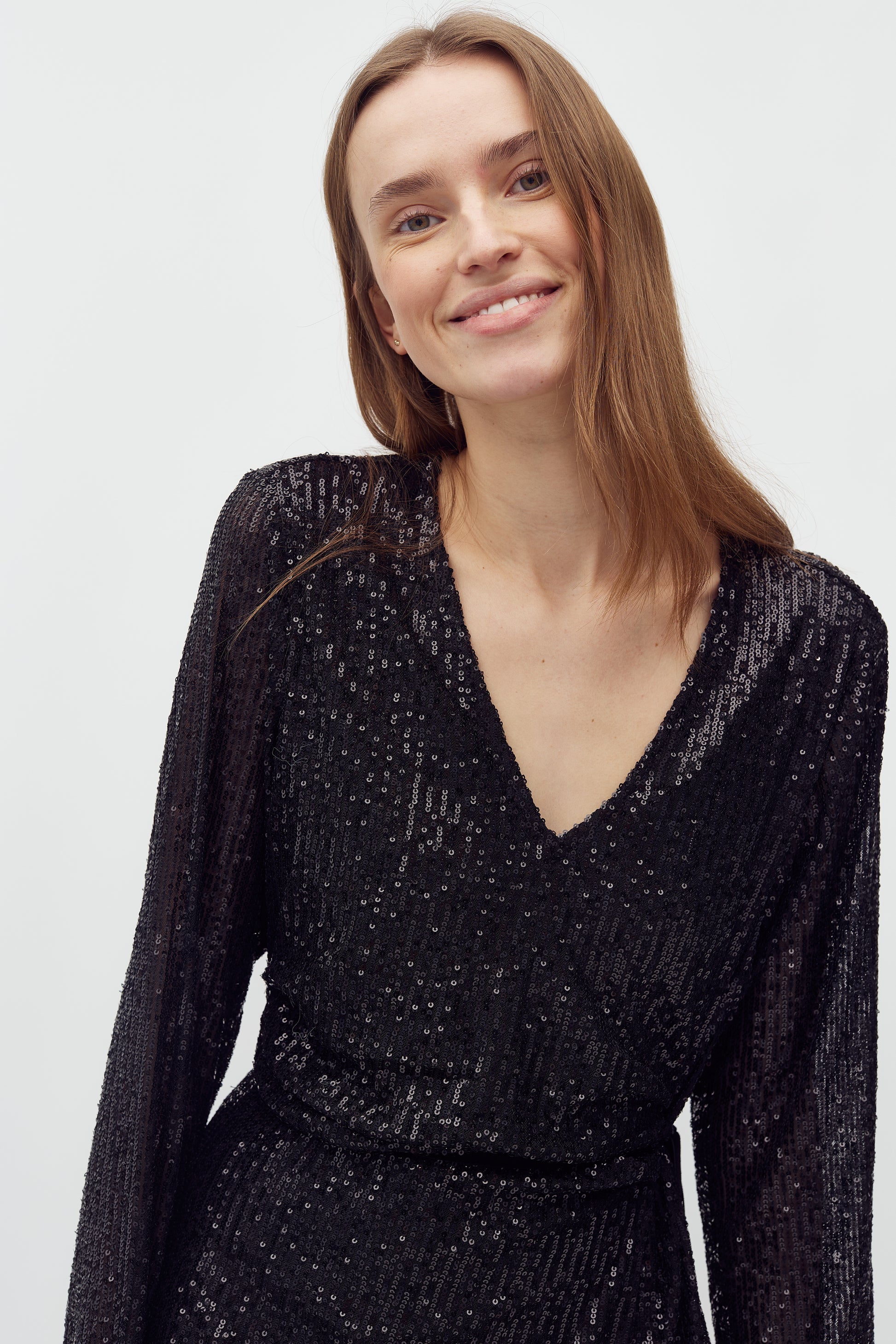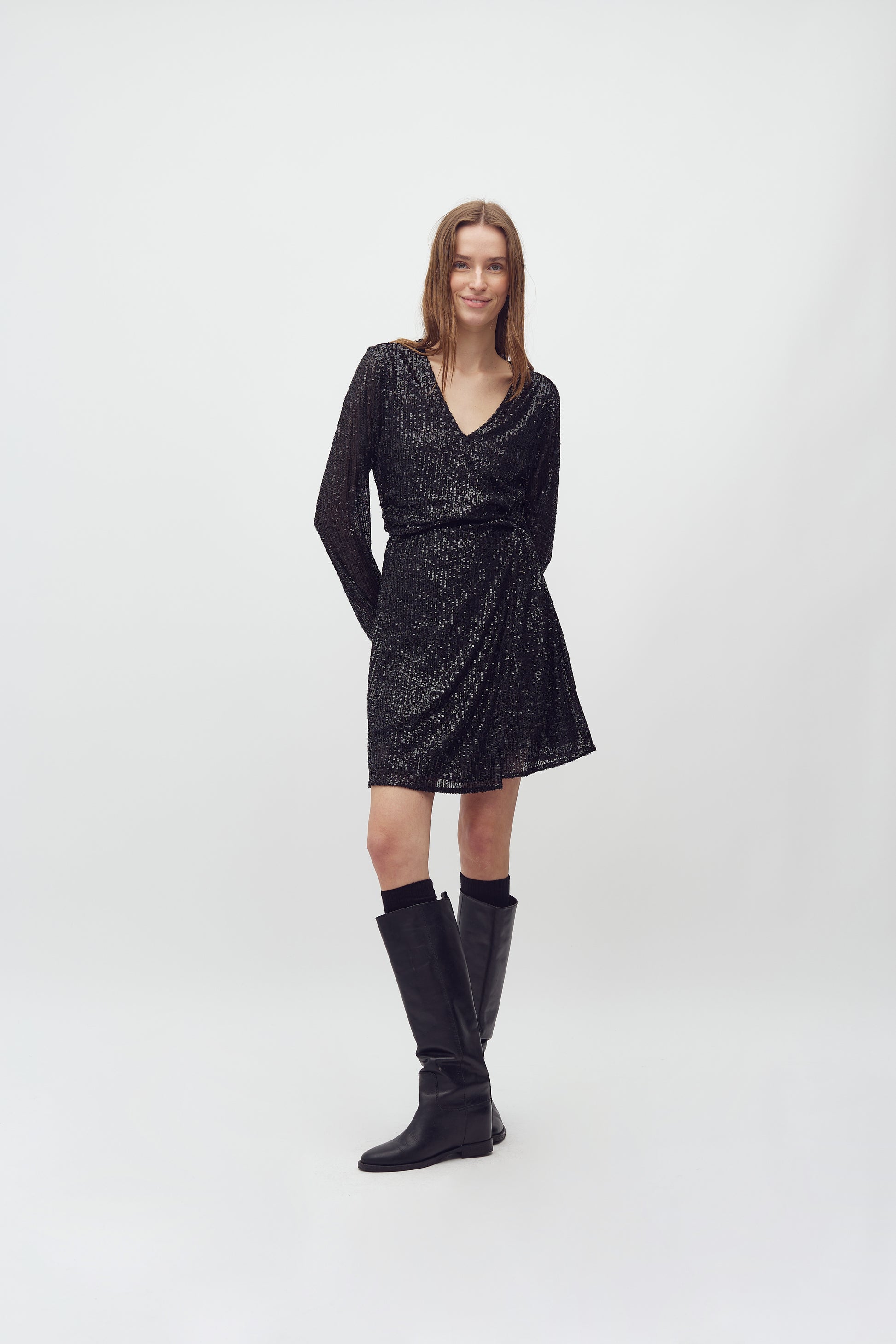 Kurzes Glitzerkleid in Wickeloptik mit V-Ausschnitt.
