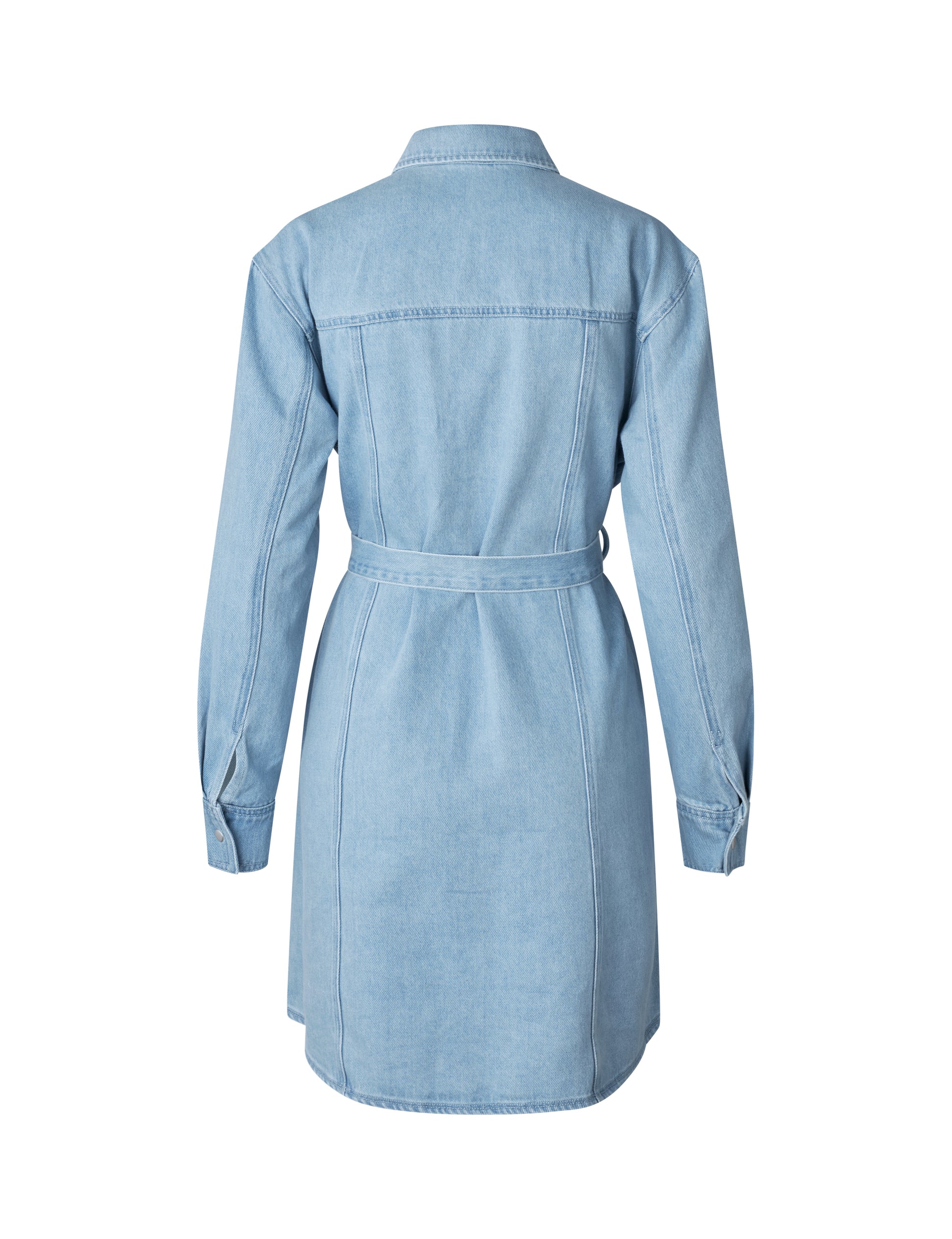 Jeanskleid mit Gürtel und Hemdkragen.