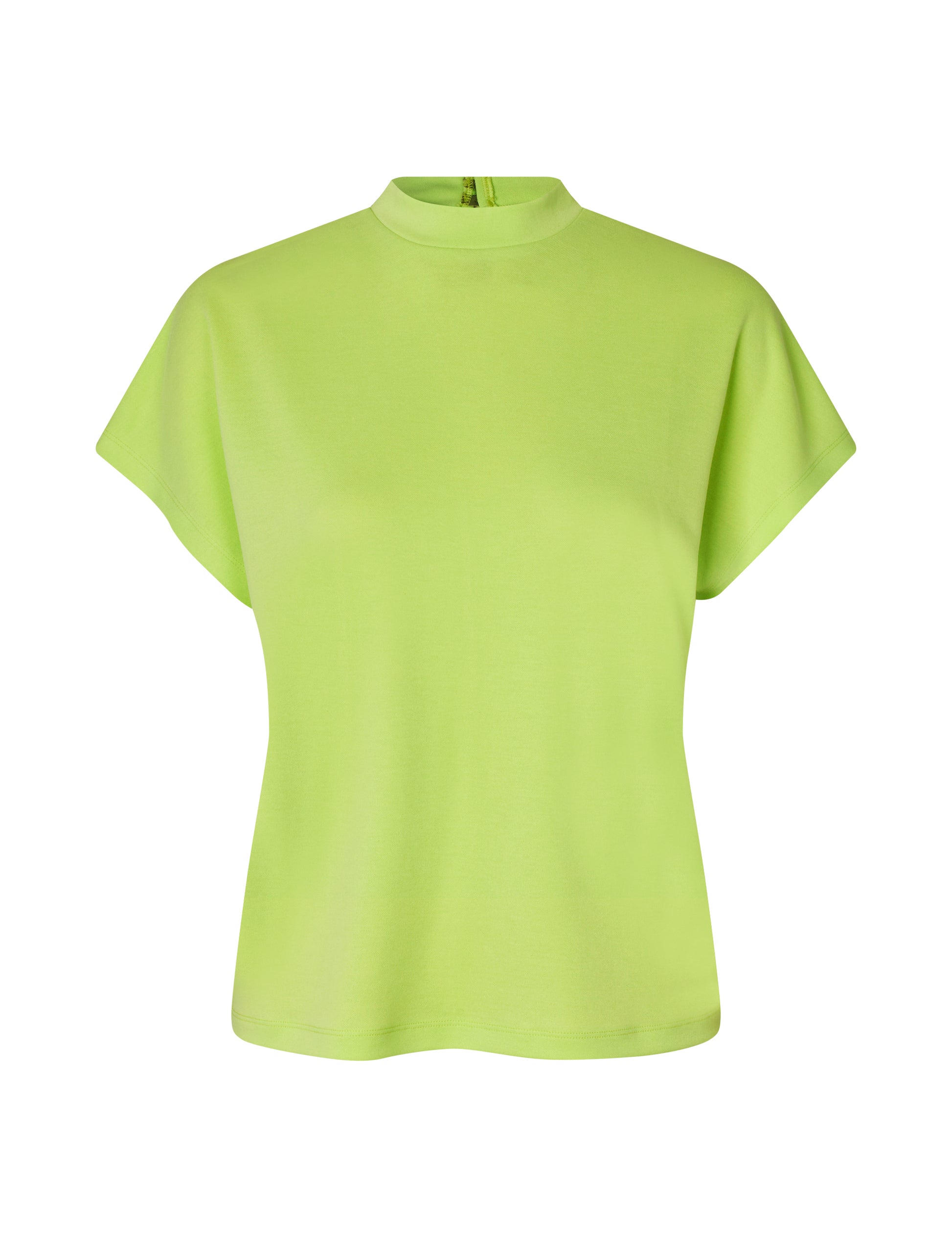 T-Shirt aus Modal mit überschnittenen Schultern, Stehkragen und kleinem Knopfdetail im Nacken.