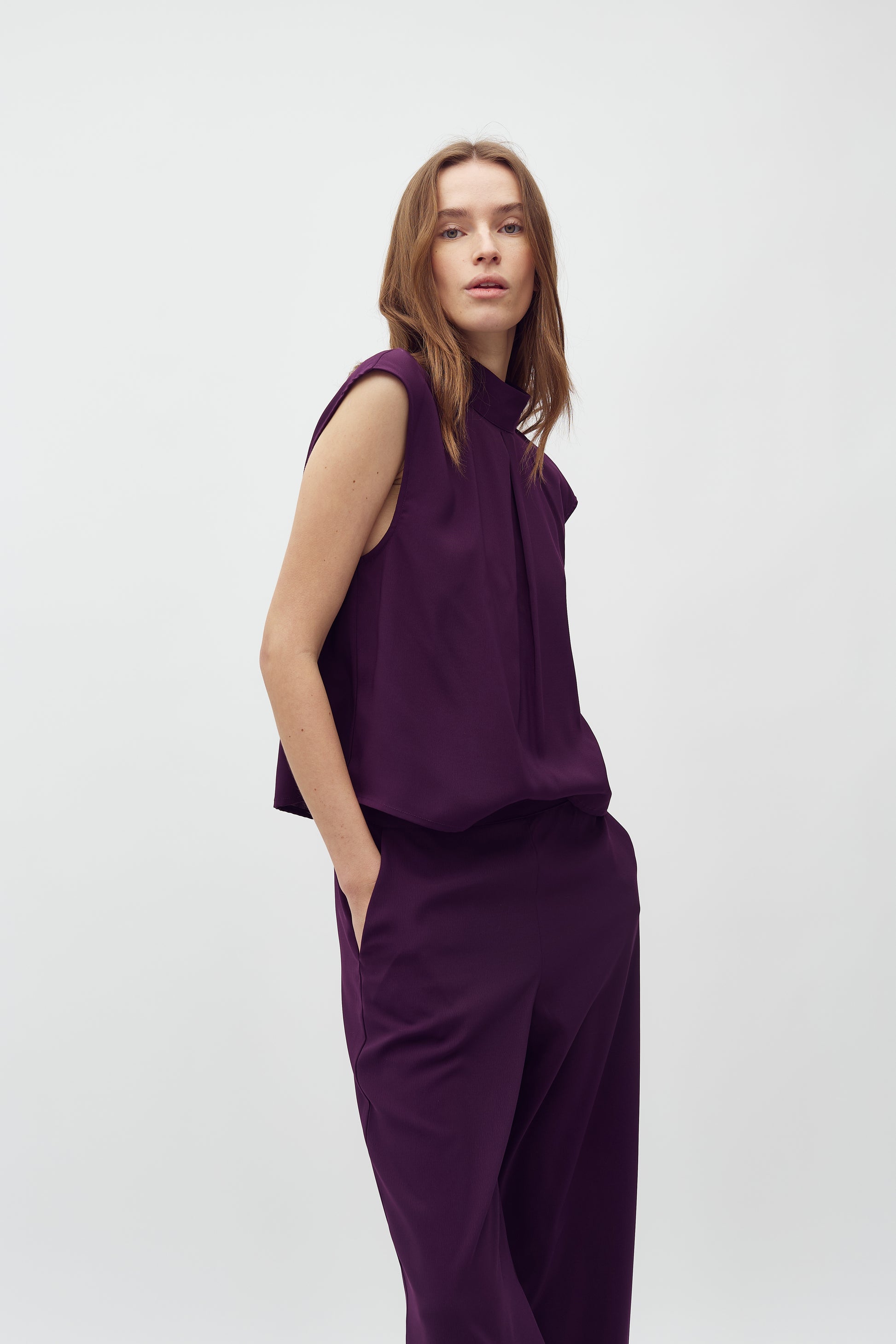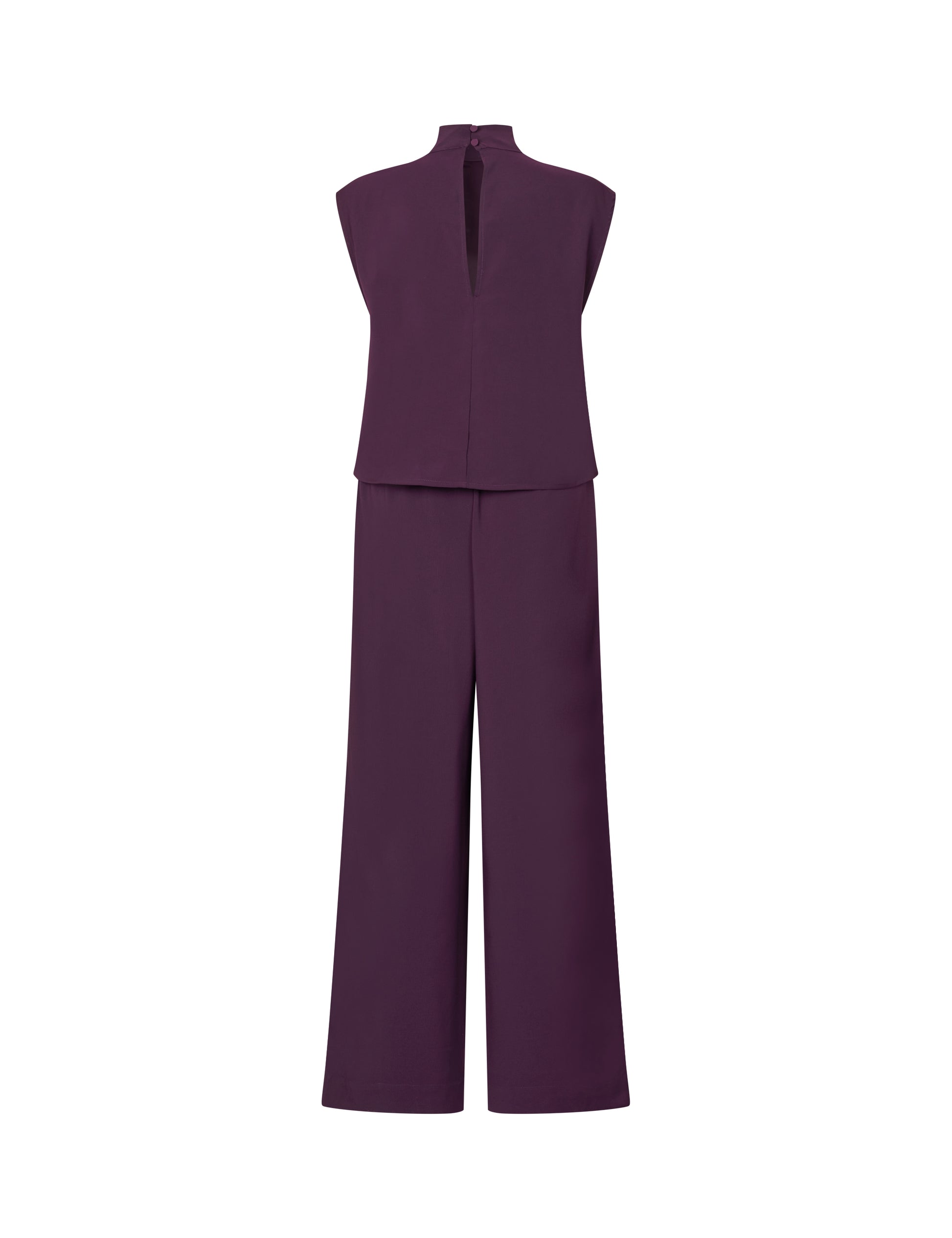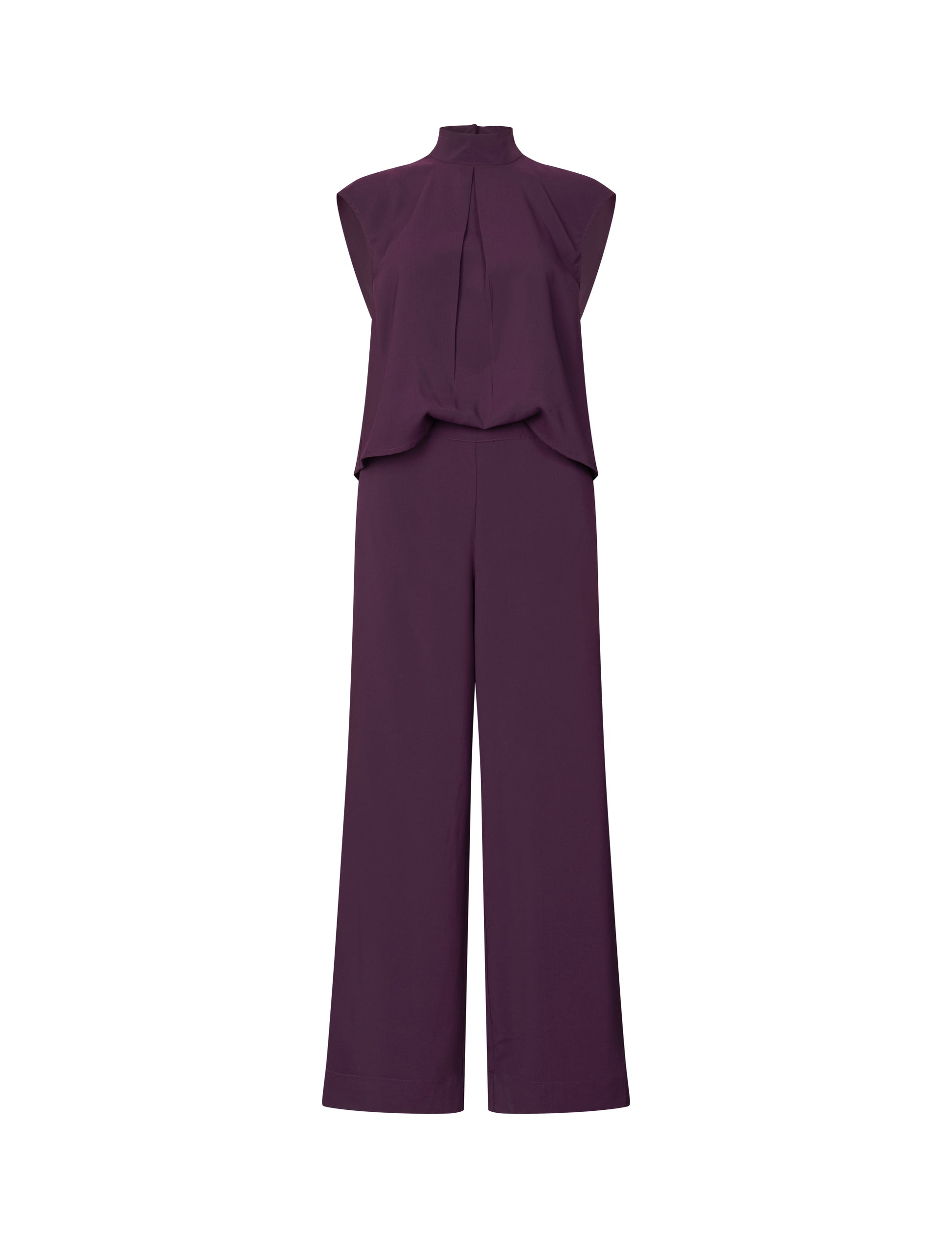 Ärmelloser Jumpsuit mit kleinem Stehkragen und Seitentaschen.