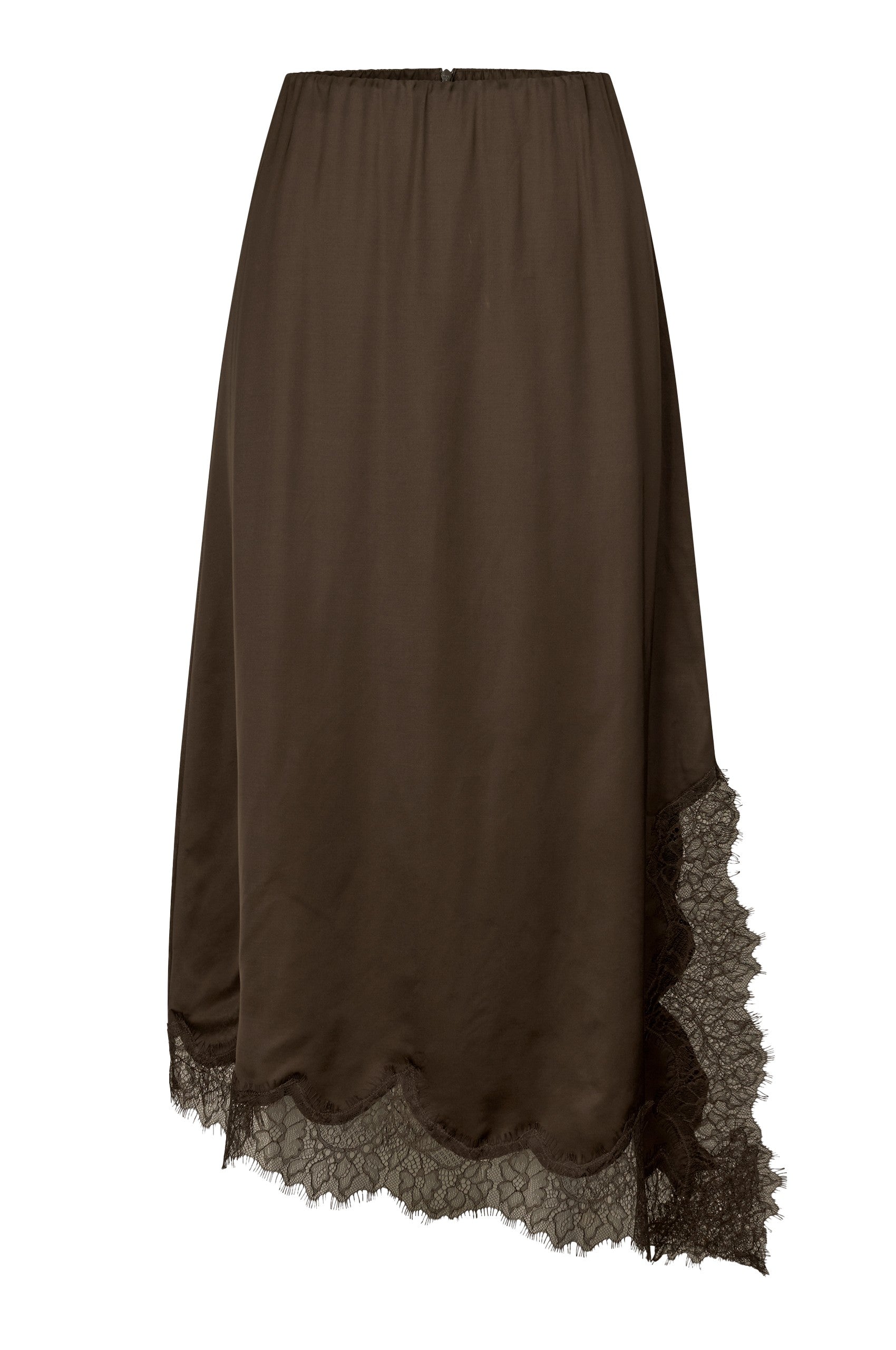 Asymmetrisch geschnittener Rock mit Spitzendetail am Saum.