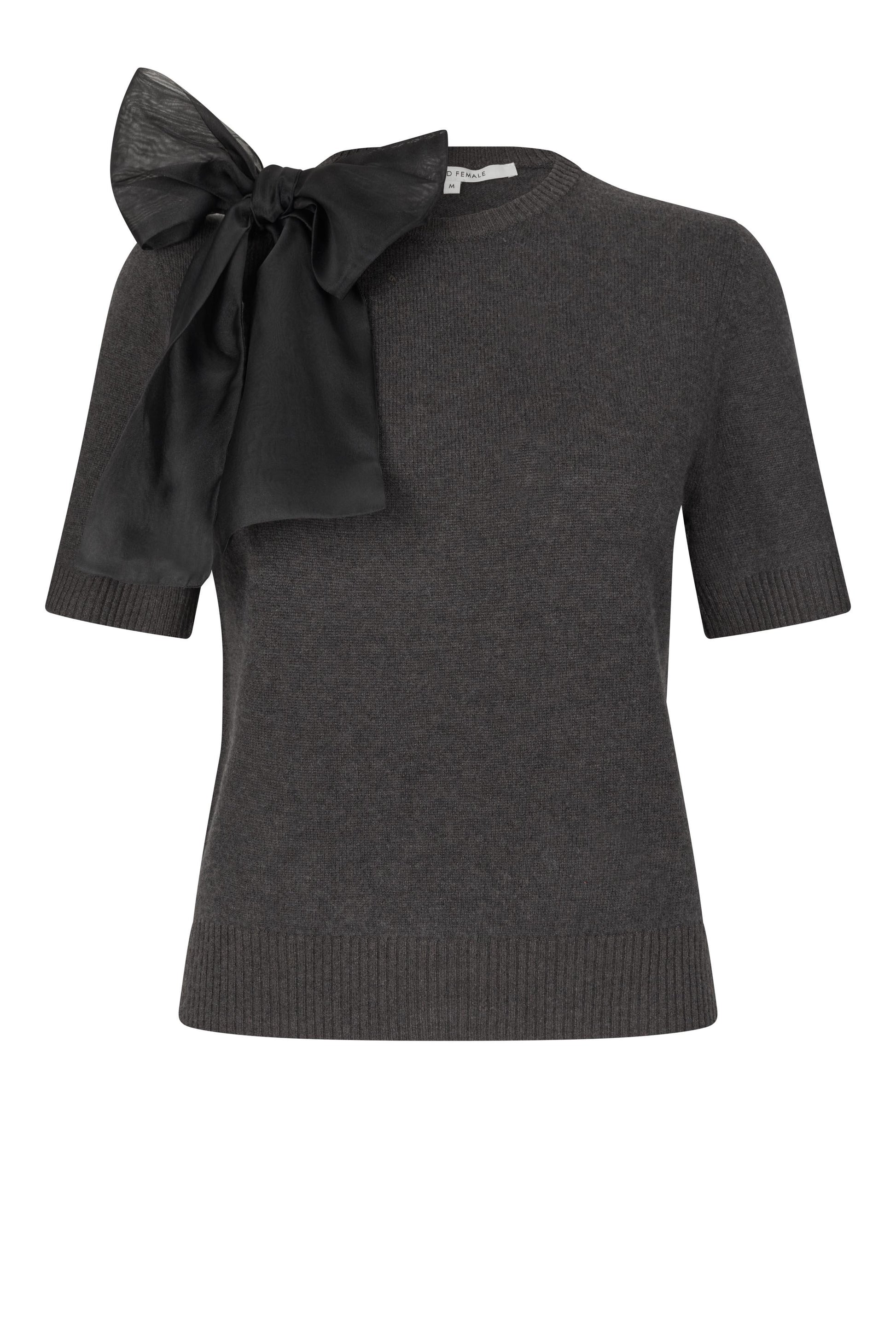 Pullover mit großer abnehmbarer Schleifenbrosche.