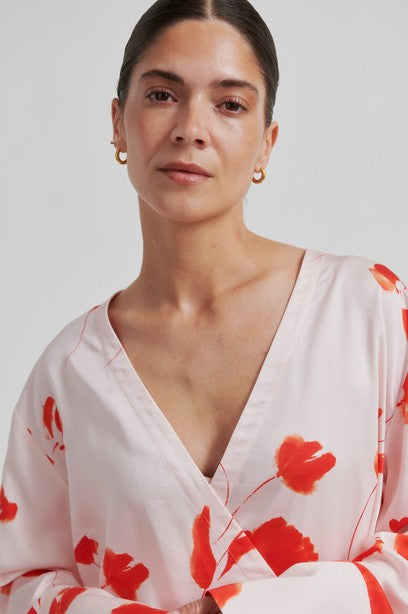 Wickelbluse aus Viskose und Tencel mit floralem Print.